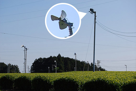 ②(例)暖かい空気を地上に送り、茶を霜の被害から守る役割。