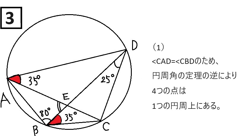 A:「円周角は同じであれば、1つの円の円周上にある。」ということが略されているということです!