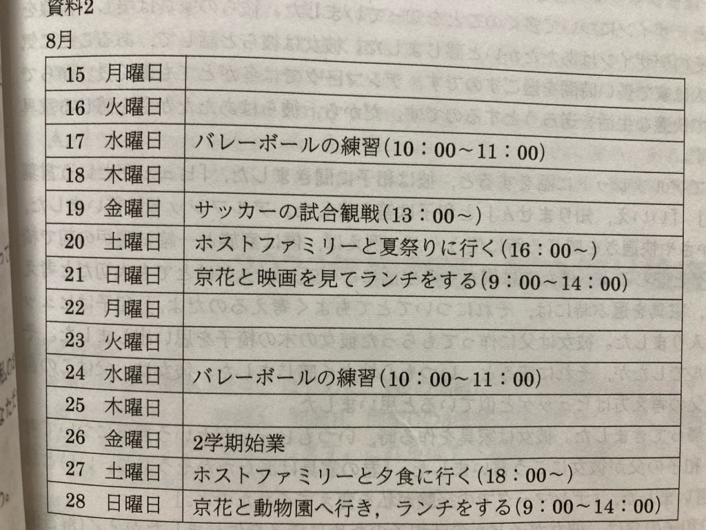 資料2のヘレンの8月28日の予定に注目。参加を希望しているツアーの日にちとかぶっている。