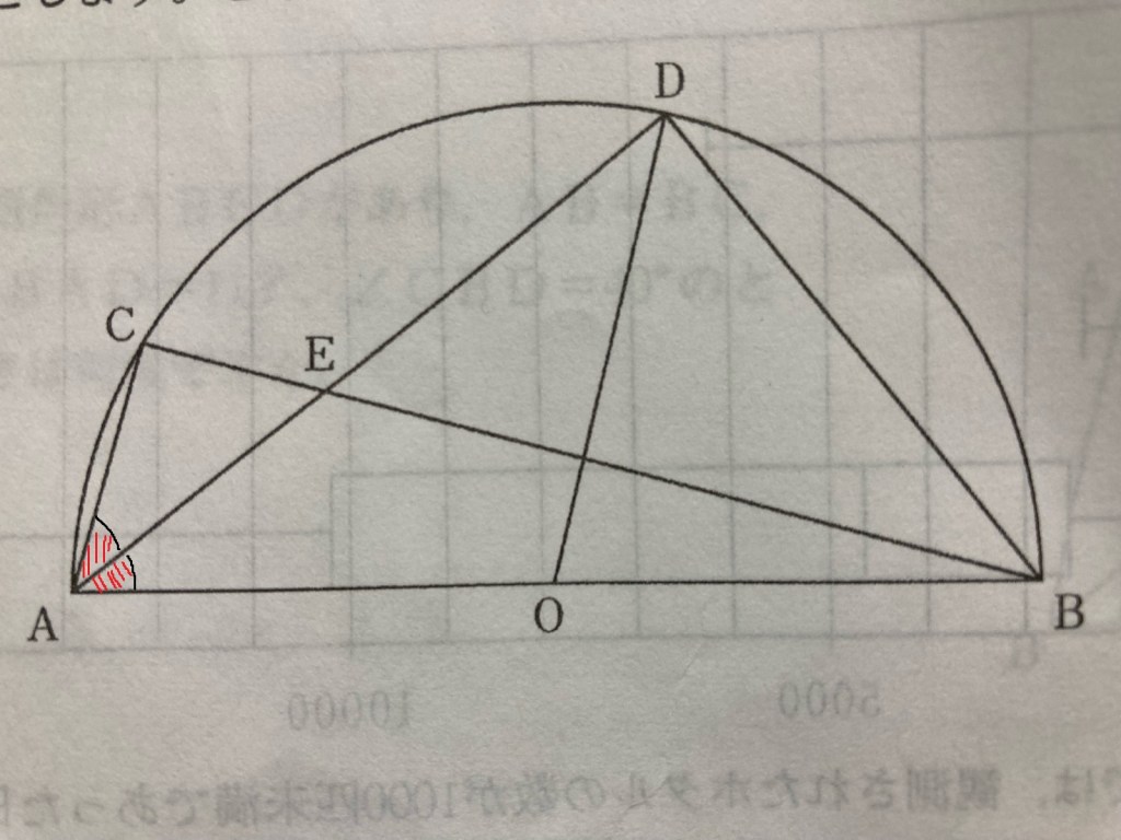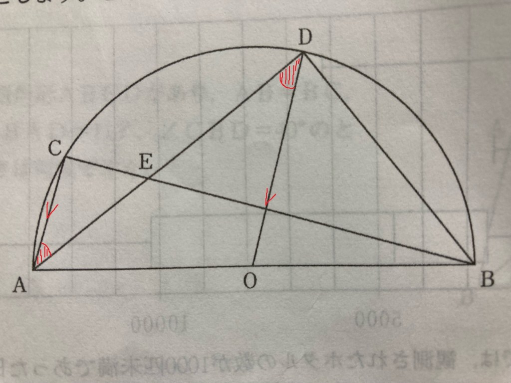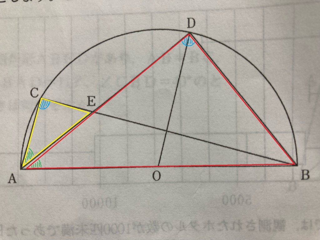 半円の弧に対する円周角であるからくACE=<ADB・・・①