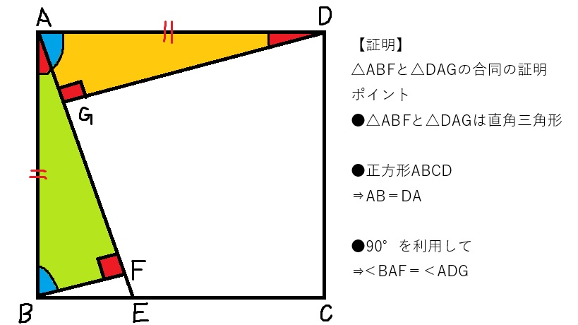 また、四角形ABCDは正方形のため、4つの辺の長さが等しいため、