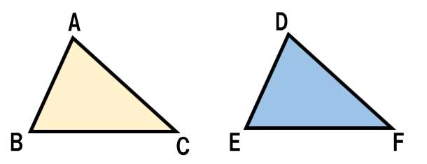図3の△ABCと△DEFのような三角形が考えられるが、常に合同になるとは限らない。