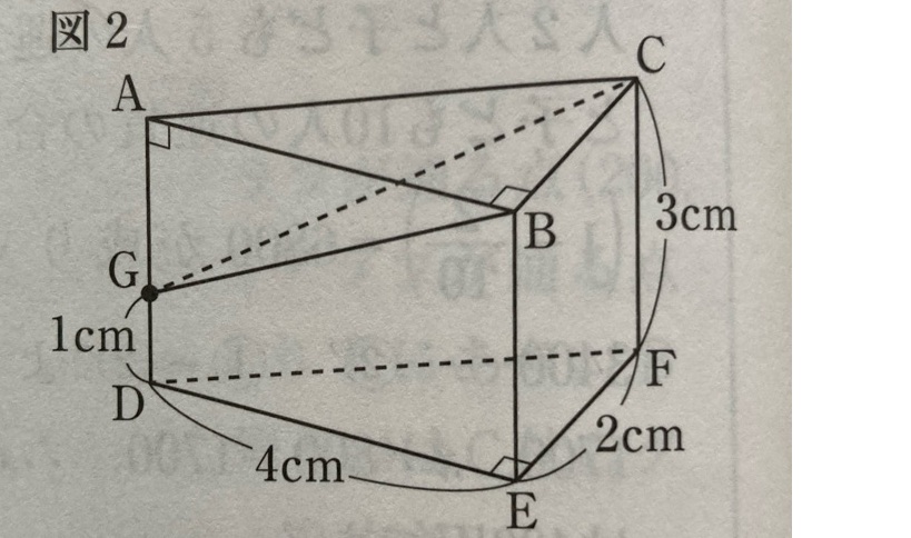 立体の体積=①【三角柱ABC-DEF】ー②【三角錐G-ABC】