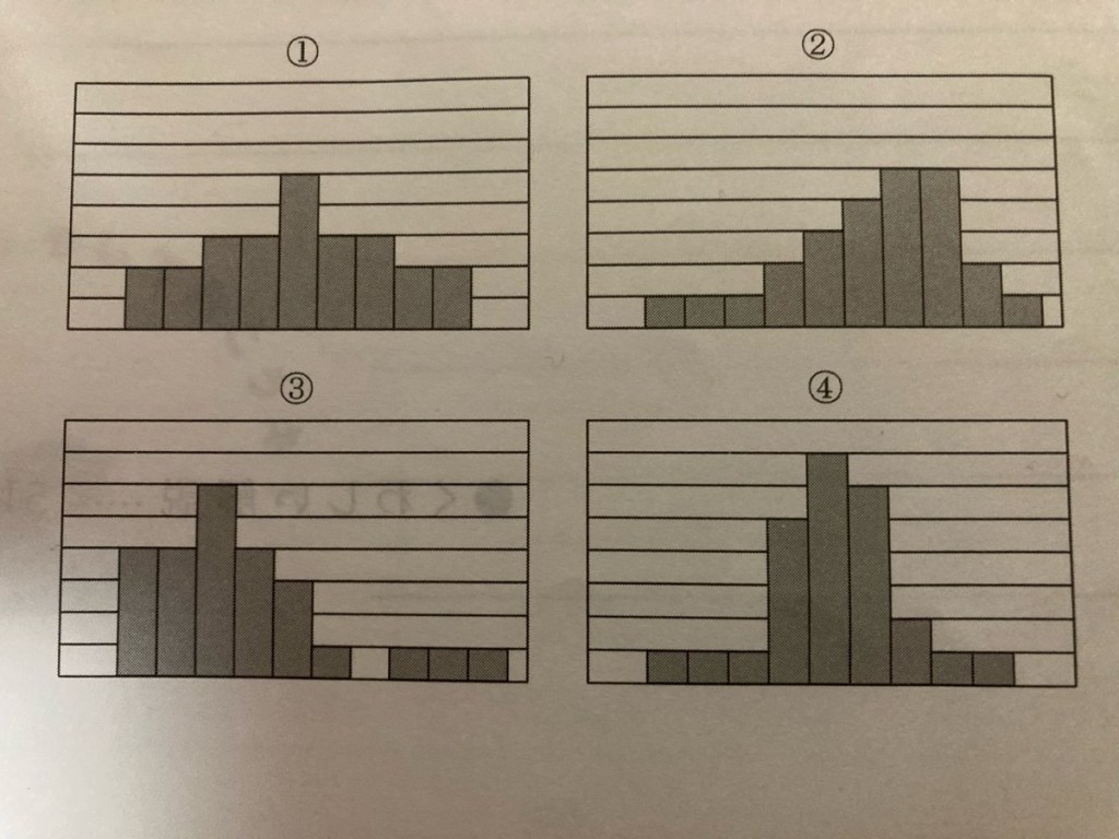 - ⇒ 箱ひげ図「ア」(左寄り、右に長いひげ)