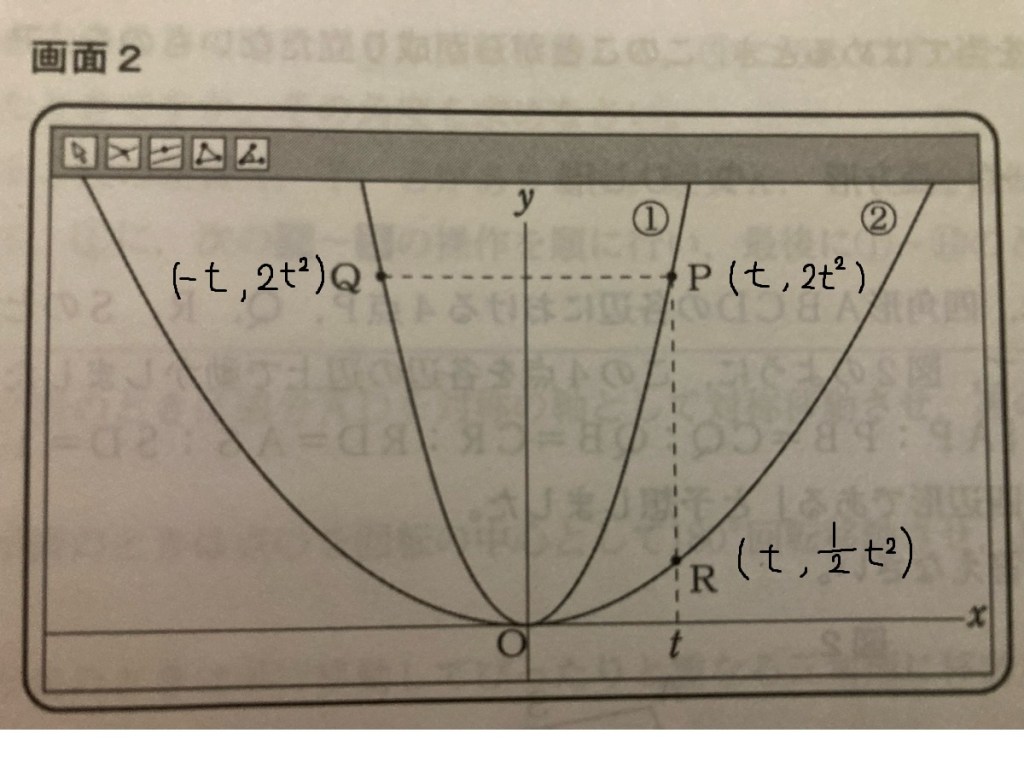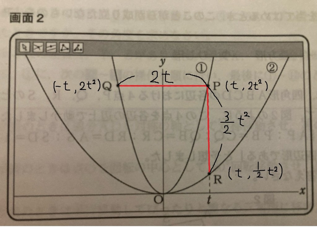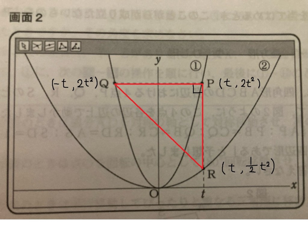 - 点Rは関数 y = (1/2)x² 上の点なので (t, (1/2)t²)