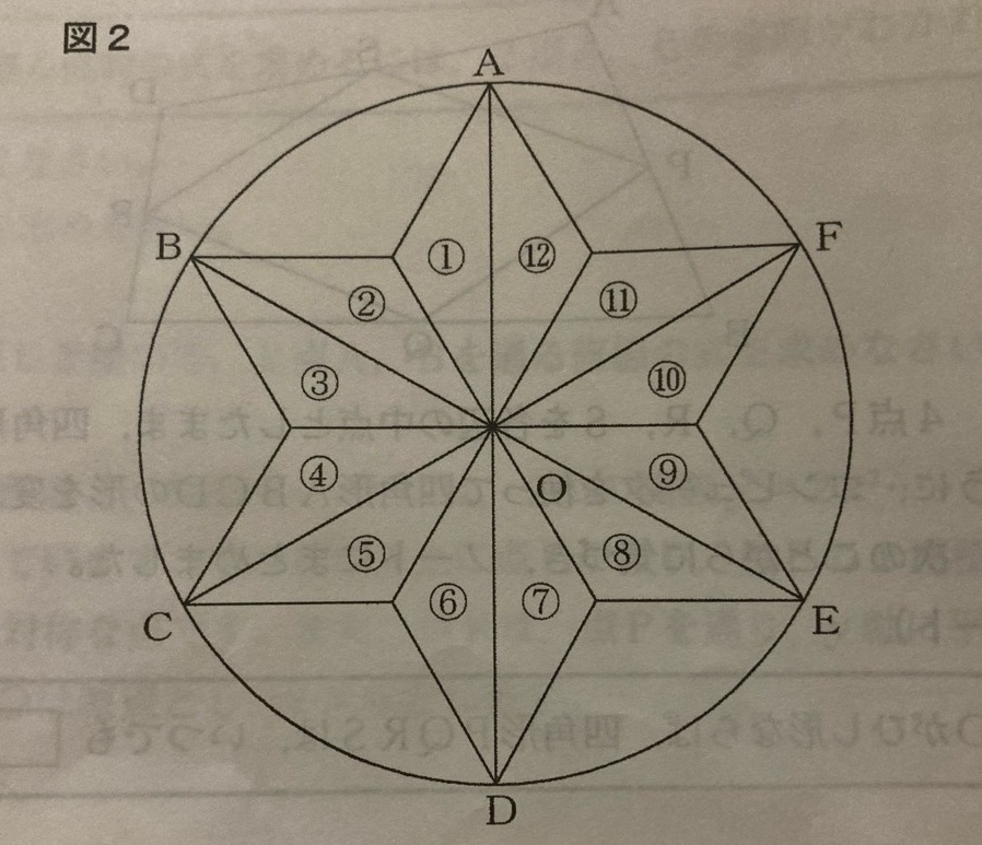 したがって、①を点Oを中心として時計回りに回転移動し、⑨に初めてぴったり重なったのは、線分AOが線分EOに重なるときである。