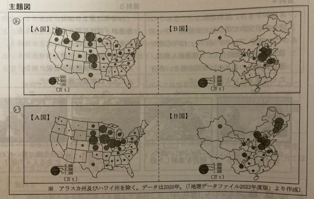 あ=小麦、◎=とうもろこしである。正しい組み合わせは「カ」である。
