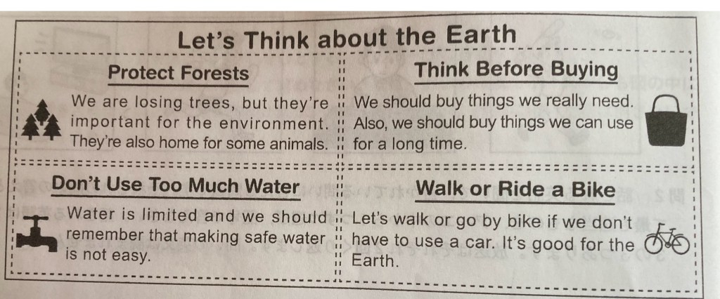 (スライドによると、地球のために私たちは何をすべきですか?)