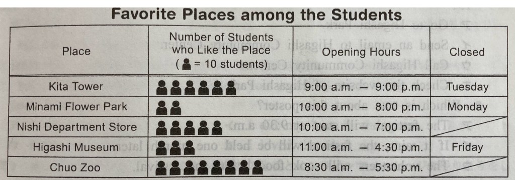 (2) Nishi Department Store is ( ) in Hana’s school.