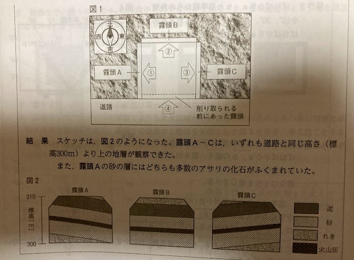 もし露頭Aの砂の層からアサリの化石が見つかっているなら、