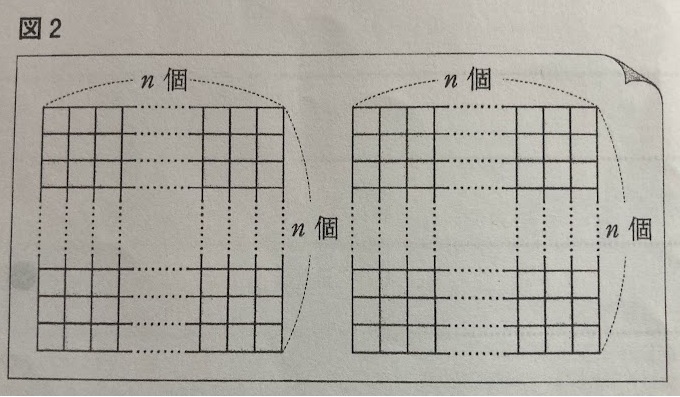 図2の用紙は,左右に同じ大きさのマス目がn個×n個ずつ印刷されている。