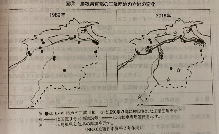 島根県東部では、工業団地は自動車専用道路(高速道路等)の近くに増設されている。