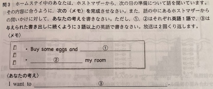 ③は「先生と何をしたいか」を3語以上の英語で自由に書く。