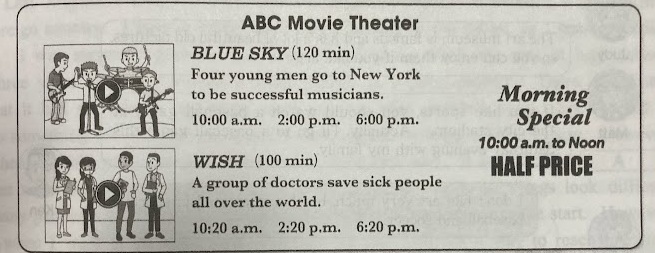 ショーン:もちろん。Blue Sky と Wish のどちらの映画を見たい?どちらもおもしろそうだね。