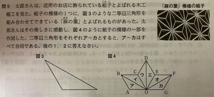 対称や回転によって重なる図形を調べる。60°回転→ウ、120°回転→オ