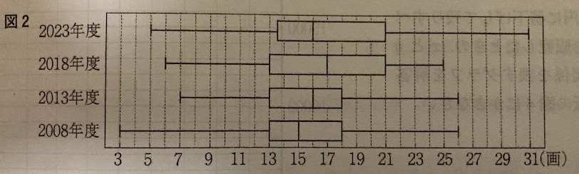よって、範囲も四分位範囲も2023年度の方が大きい。