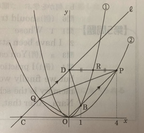 点Rのy座標は4なので、放物線 y=x2(※図の①)に y=4 を代入すると