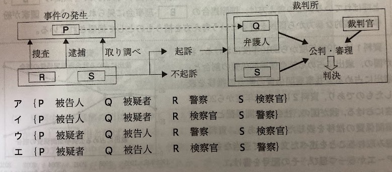 (P=被疑者 Q=被告人 R=警察 S=検察官)