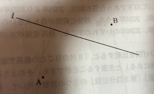 図のように、2点A、B と直線 l がある。