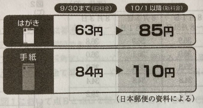 今年、同じ方法ではがきと手紙を送ると、料金の合計は