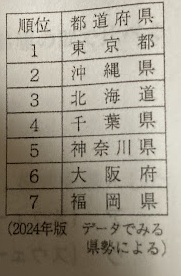 → 東京・千葉・大阪・福岡・沖縄などに集中するはず