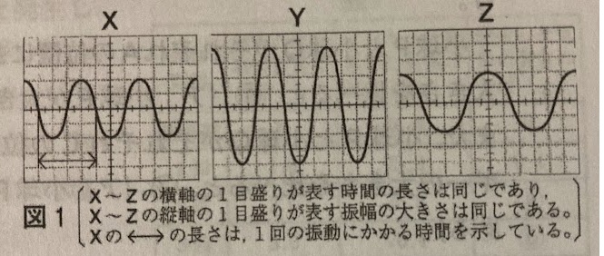図1のXでは、1回の振動にかかる時間が 0.0025秒。